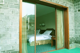 鳳凰江天旅游度假村位于湘西自治州鳳凰縣古城區(qū)內(nèi),東鄰虹橋路交通方便,南有清澈的沱江自西向東川流不息,東南角緊靠蜚聲海內(nèi)外的風雨樓——虹橋,與風姿綽綽的吊腳樓群隔江相望,是鳳凰古城控制區(qū)內(nèi)唯一按準四星級標準建造的、具有仿古建筑特色和現(xiàn)代化室內(nèi)裝修的、集休閑、購物、度假、商務于一體的旅游度假村。 鳳凰江天旅游度假村主體酒店客房部均為三層仿古建筑,形成以別致的個性小花園為中心的主樓區(qū)和副樓區(qū),目前擁有各種客房110余間,分為:帶觀景陽臺、配備高檔液晶電腦、獨立寬帶上網(wǎng)的商務房,帶客廳、廚房和露臺花園的豪華套房,以及豪華標準房,所有客房提供免費寬帶接口。同時擁有可容納400人同時用餐的具有民族特色的大型餐廳,大、小會議室和近80個車位的停車場,商業(yè)走廊可讓您盡情享受各種民族特色的服飾與小吃,整個度假村與鳳凰古城融為一體,是您休閑度假、商務旅游的最佳場所,更是您與古城親密接觸的理想平臺。 |
