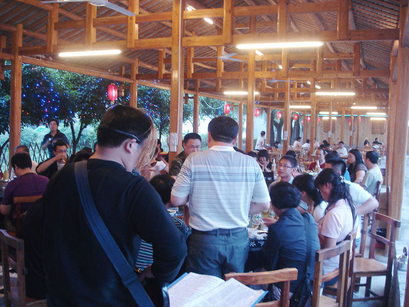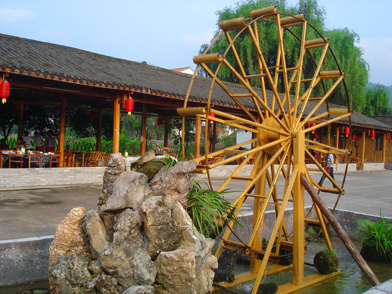 張家界武陵源大作坊美食城是一家集垂釣休閑,特色餐飲,夜市為一體的大型風(fēng)味美食城!位于風(fēng)景如畫的武陵源風(fēng)景區(qū)區(qū)政府所在地,占地3000多平方米,可同時(shí)容納400多人就餐。這里也是景區(qū)內(nèi)匯集土家美食,苗家美食的第一坊!美食城按純木四合院建造,內(nèi)設(shè)酒作坊,豆腐作坊,臘味作坊,糍粑作坊,有垂釣區(qū),燒烤區(qū),菜品自助區(qū),客人廚藝展示區(qū),農(nóng)產(chǎn)品展銷區(qū)等。酒作坊內(nèi)聘請(qǐng)了民間煮酒大師現(xiàn)場(chǎng)煮酒,你有機(jī)會(huì)可以現(xiàn)場(chǎng)吃到熱乎乎的頭鍋酒,酒坊內(nèi)有純米酒,包谷燒,高梁酒,有用野果泡制的各種果酒---燈籠酒,楊梅酒,彌猴桃酒等,更有特色的是把高梁酒放在正在生長(zhǎng)的楠竹內(nèi),用竹內(nèi)竹膜的香味把酒增香,十二天就把竹子砍下再放養(yǎng)三天就好了,客人要吃現(xiàn)場(chǎng)鋸竹筒酒吃!豆腐坊也是聘請(qǐng)民間老農(nóng)現(xiàn)場(chǎng)用自制的石磨做豆腐,在這里你可以吃到真正有豆香味的原汁原味的石磨豆腐,和渣,菜豆腐,豆腐腦等豆制品!臘味作坊里有冬天用各種香料熏制的正宗湘西藏臘肉,臘豬頭肉,臘香腸,臘豬腳,各種臘制品臘野味等。糍粑坊每天在晚上人多用餐高峰時(shí)現(xiàn)場(chǎng)打滋粑,客人也可以自己參與打糍粑這個(gè)快樂的過程,想受過年時(shí)才有的熱鬧情景!在垂釣區(qū)里我們放養(yǎng)有很多野生魚類,有時(shí)間了你可以來(lái)這里休閑垂釣,得到的魚我們就會(huì)給你現(xiàn)場(chǎng)加工,有清沌的,紅燒的,青椒燜的,酸湯的,都很好吃哦。燒烤區(qū)里,我們高薪聘請(qǐng)了燒烤大師為你現(xiàn)場(chǎng)制做,你也可以自己動(dòng)手,有烤羊排羊腿,各種串烤,烤全魚,烤全兔等,還有各種鐵板烤可以自己炒著吃!菜品自己選區(qū)里有各種山野菜,壇子菜,干菜,臘味等,有各種鮮活的魚類,河蛘,水魚,田螺,龍蝦等,有各種農(nóng)家的土雞土鴨等,有各種鮮活的野味等你來(lái)享受美味呢!客人廚藝展示區(qū)里老板特設(shè)制地幾口大鍋, 很有特色的是, 你可以自己親自下廚, 酸甜苦辣任您自由調(diào)配 。 煮好了, 大家就圍著這“灶臺(tái)”合一的飯桌享受張家界的美食了。(張家界的三下鍋是很有特色的,是邊煮邊吃的, 只是這“三下鍋”是“大型三下鍋”而已。到張家界旅游,吃張家界的“三下鍋”是一種獨(dú)有的旅游體驗(yàn),到大作坊吃“大型三下鍋”,則更將會(huì)為你的旅程增添一份難得的回味。農(nóng)產(chǎn)品展銷區(qū)里展示著當(dāng)?shù)鼗蛳嫖鞯貐^(qū)最暢銷的農(nóng)產(chǎn)品食品:正宗湘西鄉(xiāng)里臘肉,香腸,各種臘制品,洗車河霉豆腐,靈潔牌剁椒辣醬系列,菌油,正宗茶籽油,苗家酸湯,鄉(xiāng)里正宗葛粉,大壇湘西五糧液,竹簡(jiǎn)敲敲酒,張家界茅巖霉茶,野生蜂蜜,高山葛粉,張家界第一山珍巖耳,葛根片等等!