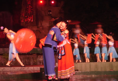 姑娘出嫁,為女人一生中最大的喜事,本應(yīng)充滿幸福、歡樂的氣氛。然而,舊時湘西、湘南、鄂西、川西(成都等地)、黔東(銅仁、凱里一帶)諸地,卻流行著一種與之完全相反情調(diào)的古老婚俗——“哭嫁”。也就是在姑娘“出閣”之前,不但新娘本人哭得很傷心,像淚人一般;而且,新娘的母親、姐妹以及姑媽、姨媽、舅媽及其他交往較多的女友,都要陪著新娘哭。湘西土家族哭嫁的風(fēng)俗尤為普遍、濃厚,不但哭嫁的時間較長(少則十來天,多達個把月),而且哭嫁歌也保存得古樸、完整。 姑娘出嫁為什么要哭?哪有那么多的東西可哭?這是一種蘊含甚為豐厚的人生禮俗,也是一種饒有興趣的婚俗事象。 俗話悅:“人不傷心不落淚。”姑娘出嫁之所以要哭,是因為在舊式婚姻制度下,女孩(尤其是勞苦大眾家庭的女孩)總是作為犧牲品“拋”(賣)給夫家的,她們的身心受到極大傷害。因此,湘西等地的女孩在出嫁之前要哭泣,要呼號,哭嫁歌就是感情發(fā)泄的最好表現(xiàn)方式。 哭嫁的源起 哭嫁的風(fēng)俗,不知道起源于什么時候。戰(zhàn)國時期,趙國的公主嫁到燕國去作王后,她的母親趙太后在臨別時"持其踵,為之泣,祝曰,必勿使返。"大約就是后來長盛不衰的哭嫁風(fēng)俗的濫觴了。 這種風(fēng)俗,直至清末還盛行于四川農(nóng)村中,隨地區(qū)變化而大同小異。解放前,聽老人們說,早些時候,沒有嫁而不哭的人家。如果出現(xiàn)嫁而不哭的姑娘,也會被鄰里看作沒有教養(yǎng)的人,傳為笑柄;相傳有出嫁姑娘不哭而遭母親責(zé)打的事,這位母親當(dāng)然算得上是入流導(dǎo)演了。 舊時宣講故事中,有花轎臨門,父親強令哭《迎風(fēng)罵媒歌》的情節(jié),可知哭嫁是有歌詞的,帶有表演性質(zhì),原是用來渲染氣氛,以悲襯喜;不過,因為婚姻是包辦的,真哭真罵的也不會少。 抗日戰(zhàn)爭后期,風(fēng)氣較開,哭嫁之風(fēng)已不盛行,而老人們卻還在津津樂道,哭的方式是,從婚期前一個月的首日起,入黃昏,姑娘訴哭約一個小時,其聲嗚嗚。十天以后,她的母親加入"陪哭";又十天以后,她的祖母加入陪哭。這家沒有諸姑姊妹,人們說,如果有的話,也應(yīng)當(dāng)加入陪哭行列的。 哭嫁在川西叫"坐堂"。清代吉道人《味蔗軒隨筆·坐堂詞》云:"婚姻之禮,各省風(fēng)俗不同。然酌禮準(zhǔn)情,各省亦大同小異。凡男家娶婦先賦之詩,謂之'催妝';女家親串頌女之詞,謂之'坐堂'。坐堂者,女當(dāng)喜期將近之先數(shù)夕,其諸姑伯姊,置酒為女祖餞,各述吉祥之詞,以為頌美,女則申己之意以答。女左右更有少女,則隨而嫻習(xí)者也。其詞要多鄙俚,然有音韻凄清,風(fēng)格遒勁,如古歌古謠者。羅江明府蔡,微服巡查鄉(xiāng)里,一日行至某處,值有女子歸,諸娣姒咸以諛詞頌女,女申意以答。忽風(fēng)吹句入耳,詞曰:'鳳凰落在桌子上,哪個女兒肯離娘'。一字一轉(zhuǎn),音韻凄其,誰謂天籟之鳴,不在愚夫愚婦耶!"云云。吉道人姓周名際唐,成都人。吉道人記得明明白白,可惜他只記了一句哭嫁詞,難窺全貌。好在舊時坊間叢刻中有《訓(xùn)女哭嫁》一種,可見一斑。這本小書的目錄有《閨聲哭》、《娘訓(xùn)女》、《嫂哭妹》、《哭爹媽》、《哭哥嫂》、《花轎到屋哭》、《哭叔爺》、《哭兄弟》、《哭外公外婆》、《哭舅爺》、《拜香火哭》等等,編次有點凌亂,似乎隨手所記,未經(jīng)文人之手。遙想《詩》十五國風(fēng)未刪之時,大約也不過如此吧! 閨聲哭 娘聽后園鳥雀驚,要聽房中女兒聲。 我娘當(dāng)門苦葛藤,手攀苦葛訴苦情。 我娘苦情苦過了,女兒苦情才起根。 ............ 桔子開花葉子青,陽雀開聲我開聲。 新打銅盆才裝水,新打剪刀兩面青。 娘不開口我開口,娘不開聲我開聲。 當(dāng)門一根木蓮樹,目連樹上掛卷經(jīng)。 一本經(jīng)書背完了,未見我娘來開聲。 虧了我娘睡得穩(wěn),爹媽眼淚貴如金。 哭爹媽 月亮彎彎照華堂,女兒開言叫爹娘。 父母養(yǎng)兒空指望,如似南柯夢一場。 一尺五寸把兒養(yǎng),移干就濕苦非常。 ............ 勞心費力成虛恍,枉自爹娘苦一場。 哭兄弟 黑漆茶盤烏木頭,姐姐離娘弟不留。 留到姐姐吃你飯,留到姐姐穿你衣。 兄弟當(dāng)家掙家忙,嫁了姐姐買地方。 上頭買齊潼川府,下頭買齊遂寧鄉(xiāng)。 ............ 這個本子所記是川北的歌詞,以前所見的是川南,吉道人所記的是川西,川東,大約也不會大異的。遺憾的是,該書所記哭嫁詞雖有"只怨媒人莫良心"等語,卻沒有列出"罵媒專目,大約是怕媒人太難堪了吧! 其實,罵媒是哭嫁中必不可少的節(jié)目,也是最具反抗色彩的哭嫁歌詞。舊社會,婦女無婚姻自由可言,由于"三從四德"的束縛,平時對于自己的終身大事幾乎不能置一詞,全由媒人和父母擺布;因此,這登花轎之前的"罵媒",便是難得的發(fā)泄機會。這早已反映在戲曲和民間說唱等藝術(shù)之中。 以前,川劇《柳蔭記》有《英臺罵媒》一折,英臺罵媒人,言詞激烈,聲色俱厲,充分表現(xiàn)了祝英臺剛烈的性格和反封建精神。她罵道:"提媒婆,更恨她,胡言亂語嘴喳喳......唯愿你,房屋遭火化,田園水推沙。"但這場戲現(xiàn)在卻被刪掉了,五六十年代還有的,全國第一屆戲曲會演的川劇《柳蔭記》也有這一折,是陳書舫演的祝英臺,得了一等獎,F(xiàn)在城里人大約以為媒婆不必罵了,但偏遠地區(qū),媒婆似乎還在肆虐。不過,據(jù)