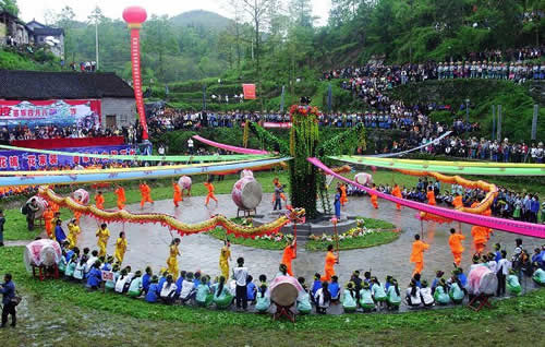 山江苗寨 鮮麗奪目的苗族服飾,情調別致的攔門酒,風格獨特的卡鼓、攔路歌、邊邊場,會使你耳目一新,如癡如醉;還有傳統節(jié)日"四月八"的跳月跳花,"六月六"的山歌對唱,又會使您心動神搖,嘆為觀止。