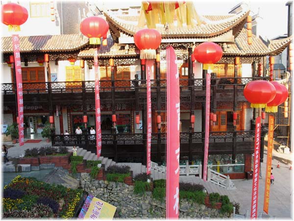 大庸府城 中央景區(qū)內(nèi)有“張家界多民族非物質(zhì)文化遺產(chǎn)展示館”和“張家界博物館”兩大主題展廳。其中多民族非物質(zhì)文化展示館主要由土寨、苗寨、侗鄉(xiāng)、瑤山、白館組成,每個(gè)展廳用情景交融的方式將其特殊的文化、建筑、起居、服飾、飲食、歌舞、傳說、戲劇、工藝、禁忌、喪葬等予以集中展示。張家界所處的大湘西,集聚著土家族、苗族、白族、侗族、瑤族等五大主體少數(shù)民族,由于大山的阻隔,千百年來他們?nèi)匀槐3种髯元?dú)特而燦爛的文化與傳統(tǒng)。其中桑植民歌、土家族擺手舞、苗家鼓舞、土家織錦、江永女書、灘頭年畫、花瑤挑花等都已被列入中國首批“國家非物質(zhì)文化遺產(chǎn)保護(hù)名錄”。