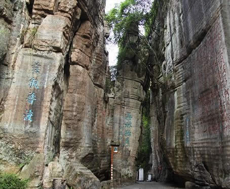不二門 清嘉慶年間辟有洗心池!安欢T”如斧斫神劈,為石林天成,石林壁上鐫滿歷代文人的詩詠。這里古柏參天,藤蘿倒掛,環(huán)境幽美。有壁石如書的萬卷書者,有嵐霧束腰的七級青石培英塔。凝神盤坐的南海觀音是一塊天然造型的巨石,惟妙惟肖。觀音巖周圍,環(huán)繞著具有明清風(fēng)格的地藏庵、嵩山堂、水府閣等建筑物,布局靈巧緊湊,主題鮮明,因勢造景。景點間曲徑迂回,迷趣深奧,稱八陣圖。景區(qū)內(nèi)的河灘上有兩處溫泉,氤氳縈繞,水溫適宜(41℃),水質(zhì)良好,能治療多種疾病?h城人民經(jīng)“不二門”前往溫泉就浴者絡(luò)繹不絕,現(xiàn)又增建了石牌坊和民俗博物館。