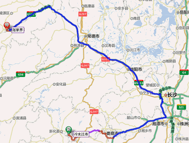 冷水江市到張家界自駕車路線圖 冷水江市到張家界自駕車旅游動畫演示