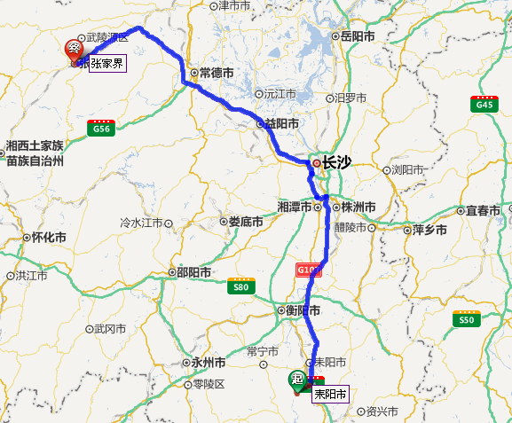 左右,沿途經過耒陽——衡陽——湘潭——長沙——益陽——常德——慈利——張家界。