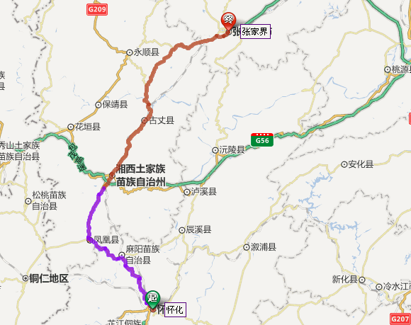 懷化市到張家界自駕車路線圖