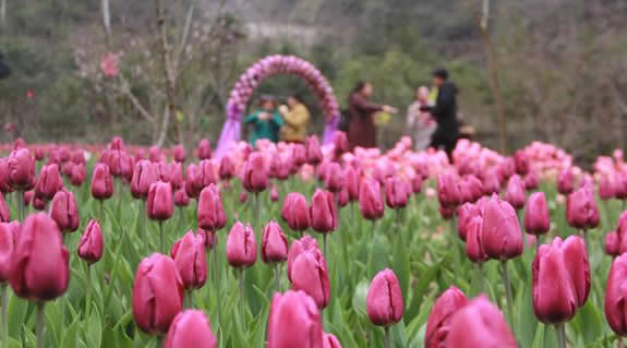 從2016年開始,郁金香展已成為了張家界老道灣度假景區(qū)春節(jié)里的節(jié)目,來自異域的芬芳別樣動人,每年的規(guī)模都在擴(kuò)大,品種也越來越多;2016年展出了從荷蘭飄洋過海而來的、由彭麻麻命名的“國泰郁金香”;2017年的郁金香花展將展出50個品種50多萬株,其中有15個品種是往年都沒有展出過的新品種。