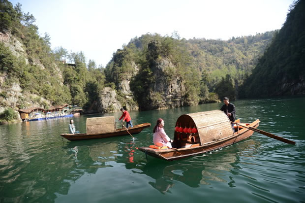 三月春光美,引得游人醉。3月27日上午,世界自然遺產(chǎn)地張家界武陵源寶峰湖景區(qū)游人如織、游船如梭,來自五湖四海的游客在明媚的陽光下盡情欣賞如詩如畫的醉美情湖風(fēng)光。據(jù)了解,隨著連綿陰雨天氣的結(jié)束,前來寶峰湖景區(qū)踏春郊游的客人與日俱增。