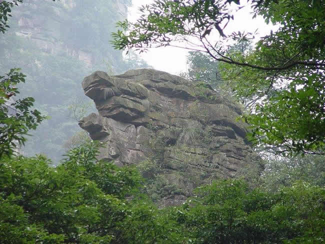 將軍巖!民間傳說(shuō)是向王天子的化身,看他身披金甲,肚腹微突,背手而立,那神采,那風(fēng)韻,儼然一位指揮千軍萬(wàn)馬的將軍。已故著名作家莫應(yīng)豐寫(xiě)詩(shī)贊道:“寂寞深山萬(wàn)古幽,天工造化藝人羞,山中天子隨云去,石上將軍伴歲留”滄桑無(wú)語(yǔ),歲月無(wú)邊,長(zhǎng)留天地間的是將軍風(fēng)采!