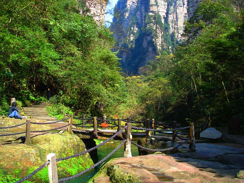 上 午:張家界市區(qū)出發(fā),乘車直接從武陵源門票站進(jìn)入【張家界國家森林公園】游玩(門票245元+5元景區(qū)保險(xiǎn),游覽兩天);徒步游覽“世界上最美麗的峽谷”---金鞭溪景區(qū)(約2.5小時(shí))(包含觀音送子、豬八戒背媳婦、神鷹護(hù)鞭、劈山救母、西游記外景拍攝地、千里相會等景點(diǎn)。)提示:走完金鞭溪后,沿龍鳳庵方向上楊家界。還可以從八里坡徒步約1.5小時(shí)上楊家界或者乘坐楊家界索道(需要乘坐者自行購買)上山,在指定時(shí)間地點(diǎn)集合。